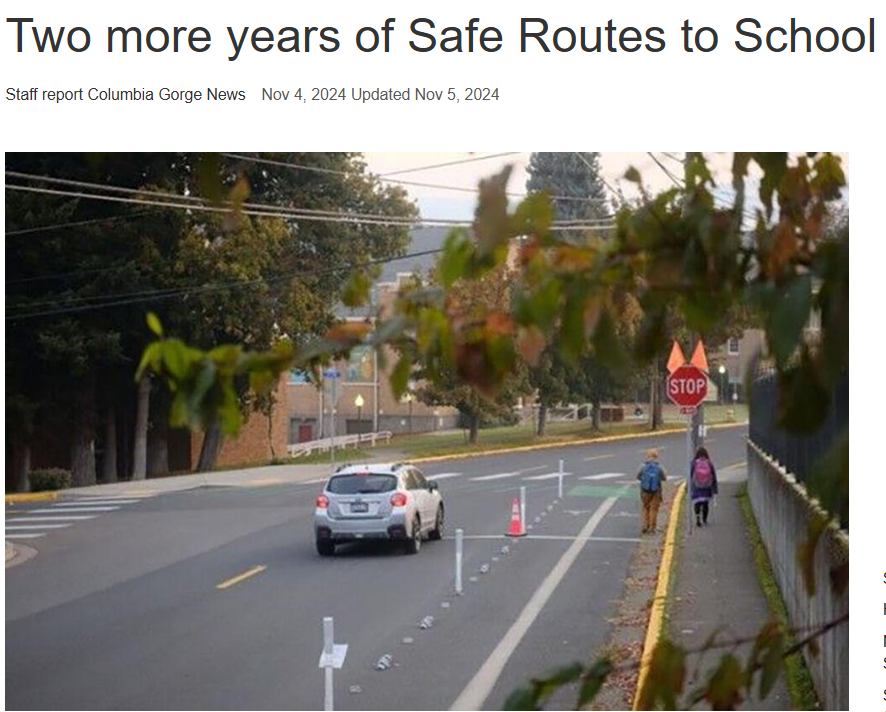 This program inspires a culture of walking, rolling and biking to school and afterschool activities for students and caregivers at all 8 schools in the Hood River County School District.